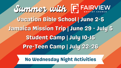 Registration for VBS is OPEN! VBS is for kids entering Kindergarten - entering 4th Grade. This is a perfect opportunity for you to invite your neighbors to become a part of the Fairview Family! Use this QR code to register your kiddos or sign up to serve! Any questions can be directed to Pastor Eric.